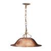the domed hammered shade with brass scrolling brackets, suspended by a linked chain with ceiling rose
