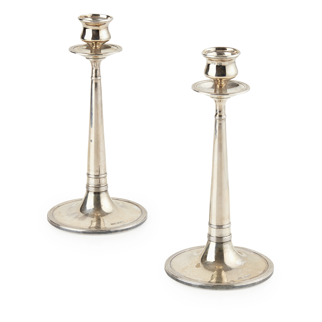 PAIR OF ARTS & CRAFTS SILVER CANDLESTICKS, CIRCA 1905