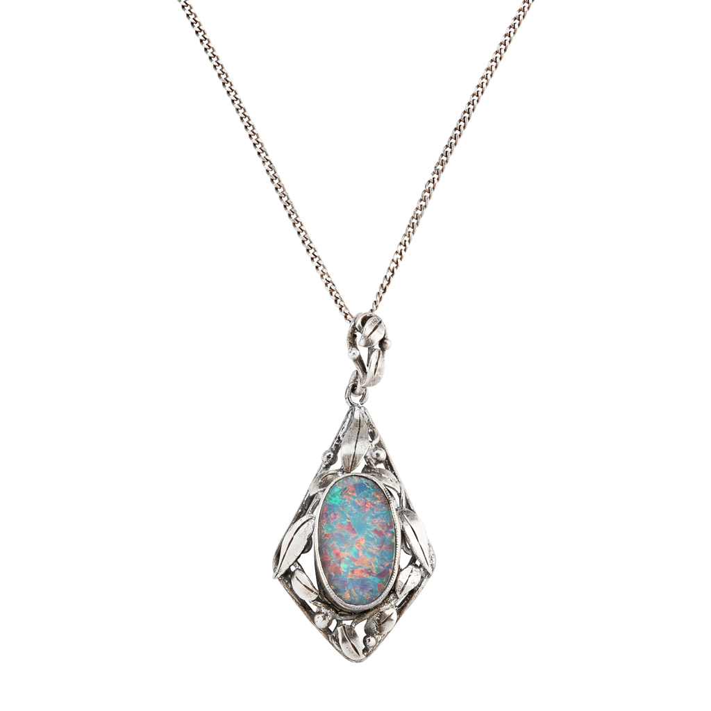ARTS & CRAFTS WHITE METAL AND OPAL SET PENDANT, CIRCA 1910