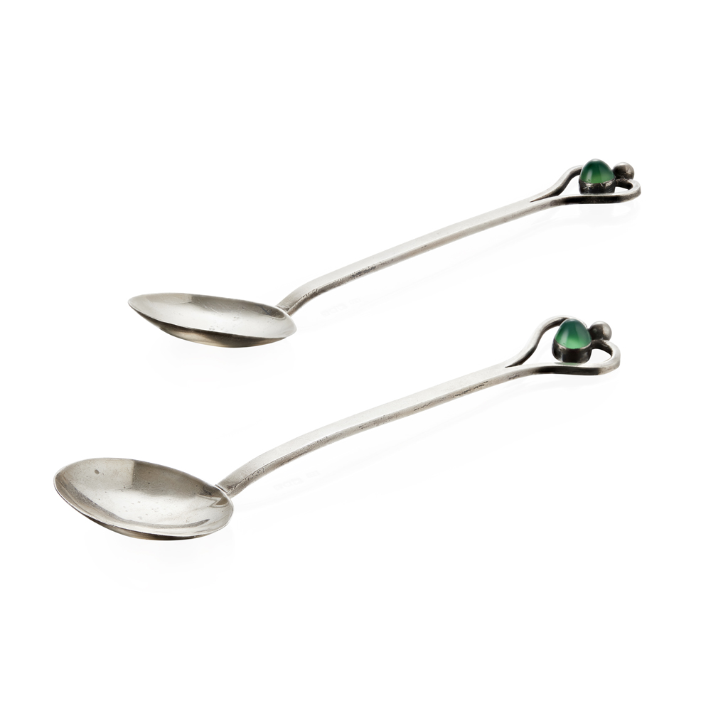 PAIR OF ARTS & CRAFTS SILVER SPOONS, DATED 1913