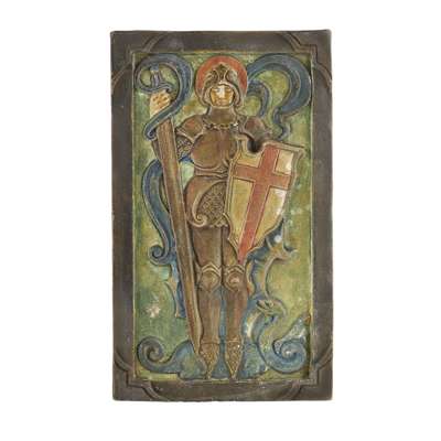 ARTS & CRAFTS POTTERY PLAQUE OF ST. GEORGE, CIRCA 1920
