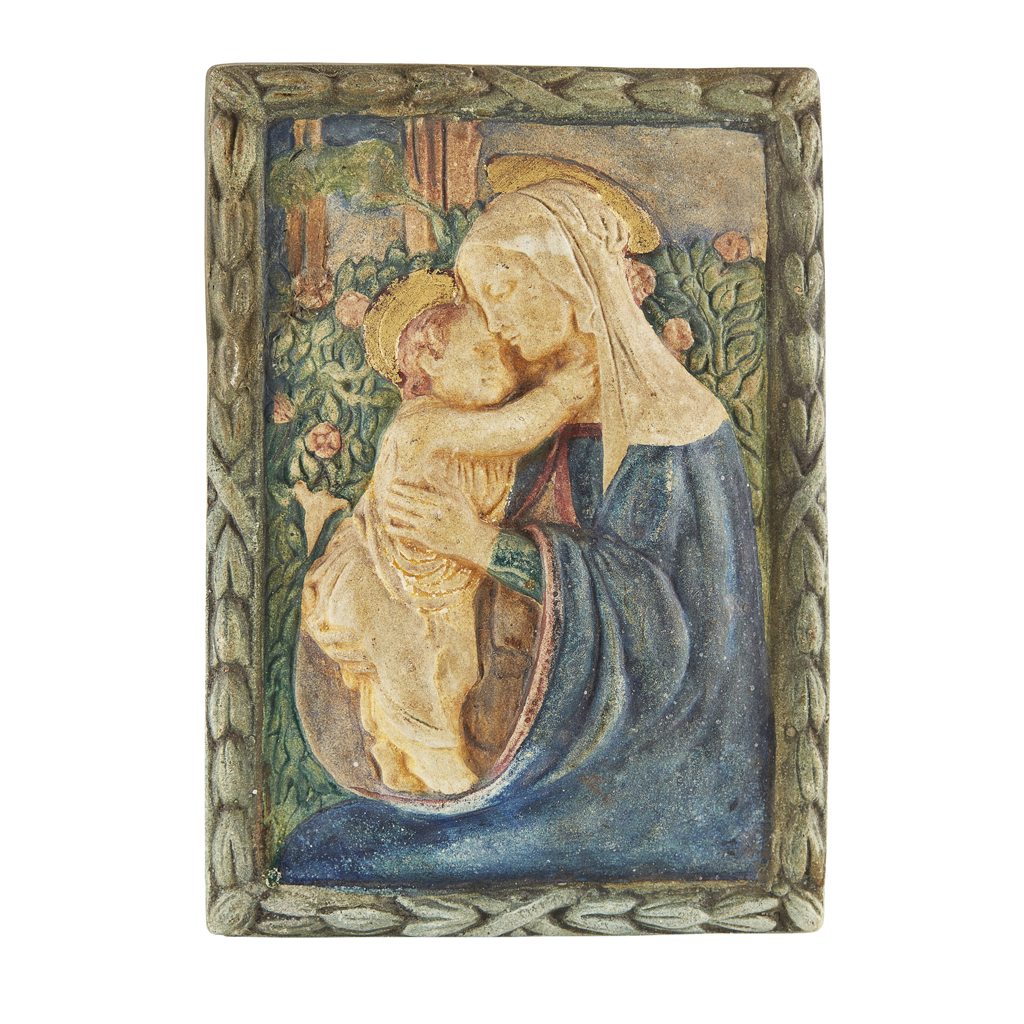 ARTS & CRAFTS POTTERY PLAQUE OF THE VIRGIN & CHILD, CIRCA 1920