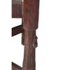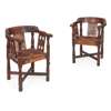 each with curved top rail and arms, carved with monks' heads, above three panels, carved with a cipher and roses, raised on octagonal legs joined by an X stretcher (2)