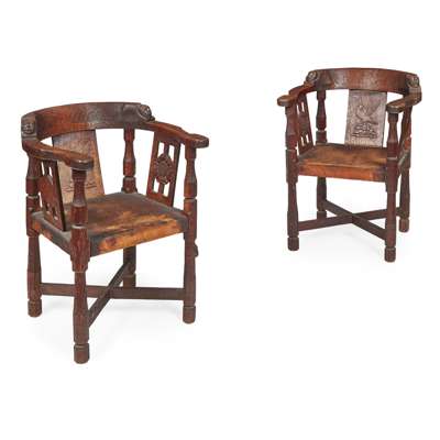 PAIR OF OAK 'MONKS'' CHAIRS, CIRCA 1930