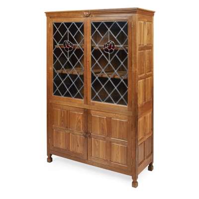 ARTS & CRAFTS OAK BOOKCASE CABINET, LATE 20TH CENTURY