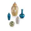 with stylised foliate decoration, buff glaze highlighted with gilt, impressed mark SEVRES, painted mark H. PATINE, 25cm high; TWO SMALL SÈVRES ART DECO VASES, with slip and craquelure decoration, printed marks and artist's monogram, 10cm and 6cm high; and TWO SÈVRES VASES BY PAUL MILET (1870-1950), each covered in green, blue and turquoise glazes, printed and painted marks PM/ SÈVRES/ FRANCE, 14.5cm and 12cm (5)