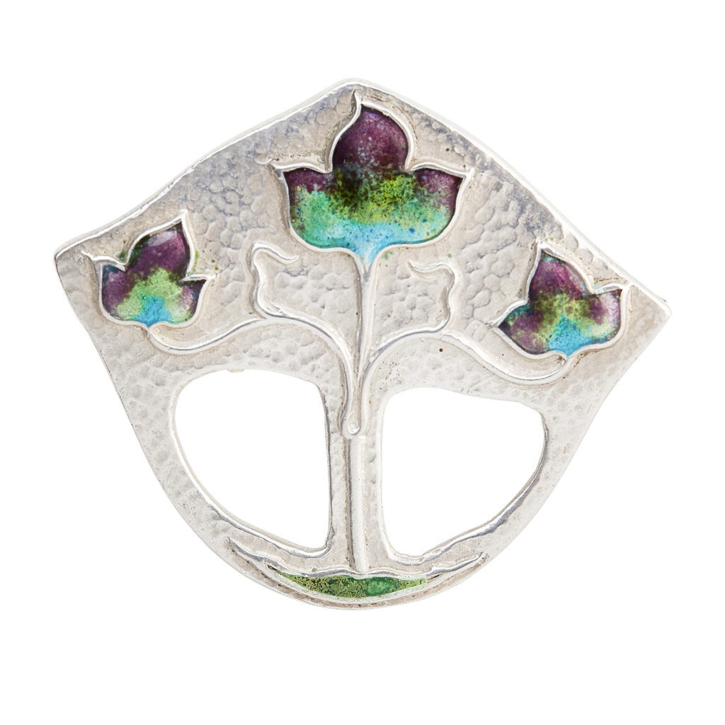 ARTS & CRAFTS 'CYMRIC' SILVER AND ENAMEL BROOCH, CIRCA 1900