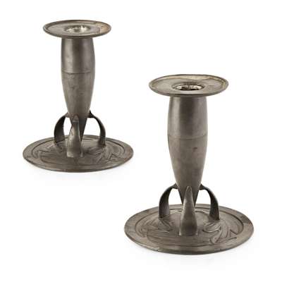 PAIR OF 'TUDRIC' PEWTER CANDLESTICKS, CIRCA 1900