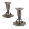 each with tapering stems and spreading bases cast with stylised Celtic decoration, stamped maker's marks TUDRIC/ 0221/ 3 (2)