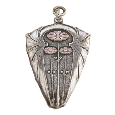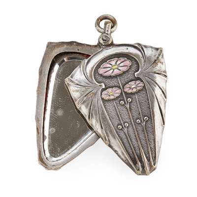 ART NOUVEAU WHITE METAL AND ENAMEL MIRROR PENDANT, CIRCA 1900