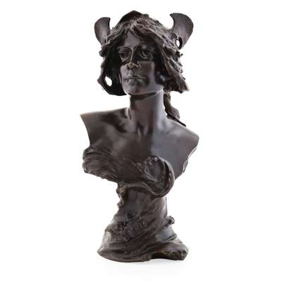 cast as a young man with head tilted, wearing a winged helmet, on a twisted base, signed G. FLAMAND