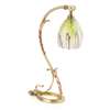 the cast base issuing scrolling arm with bracket support, with adjustable fitting and Schneider iridescent glass shade, the shade with script etched mark SCHNEIDER