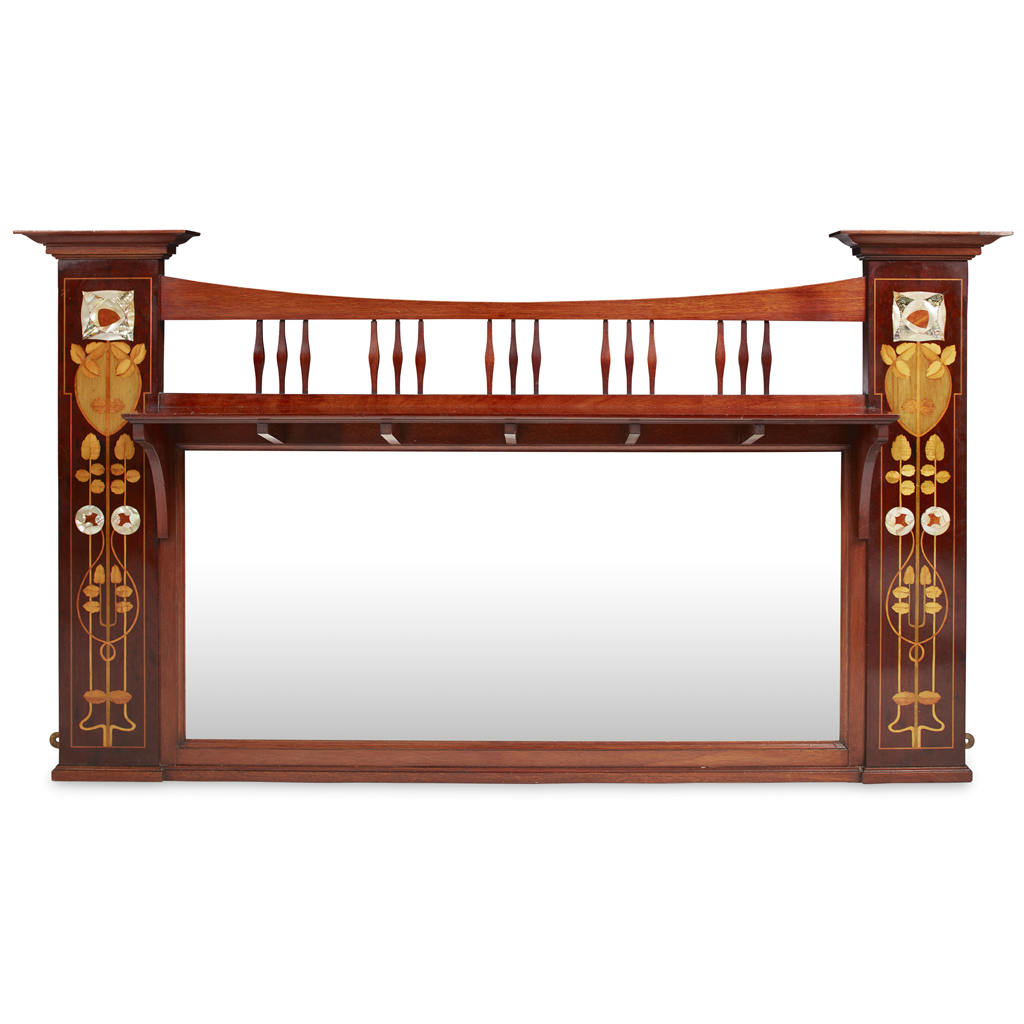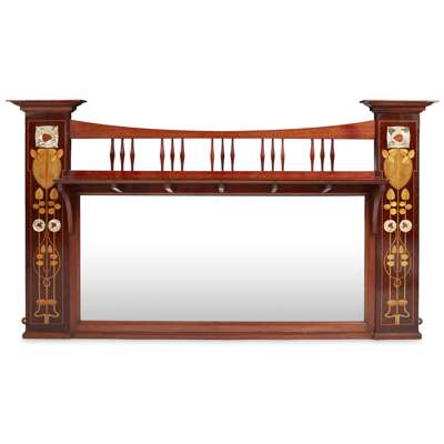 ARTS & CRAFTS INLAID MAHOGANY OVERMANTEL MIRROR, CIRCA 1900
