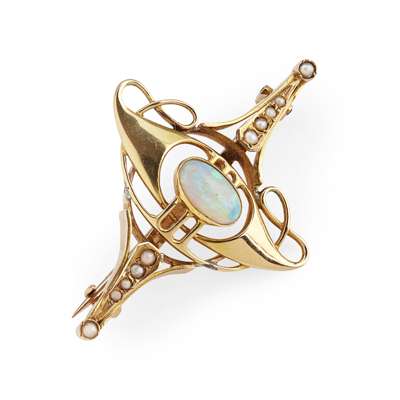 ADAPTED ART NOUVEAU GOLD AND OPAL SET BROOCH, CIRCA 1900