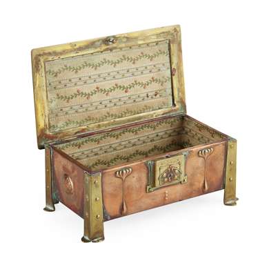 ART NOUVEAU BRASS AND COPPER TRINKET BOX, CIRCA 1900