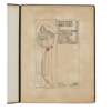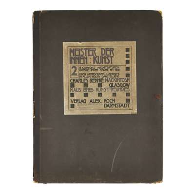 a portfolio of fourteen designs; twelve in colour, three with additional silver or gold printing, published by Alexander Koch, Darmstadt, with three title pages of text by Herman Muthesius, and including designs for: Plans of ground and first floors, West and East Elevations, North Elevation (supplied in facsimile), South Elevation, Perspective from South East, Perspective from North West, Perspective of the Music Room Elevation of Music Room Windows, etc., with original board cover and remains of ribbon ties, contained within new customised cloth box with facsimile of title page on front board (2)