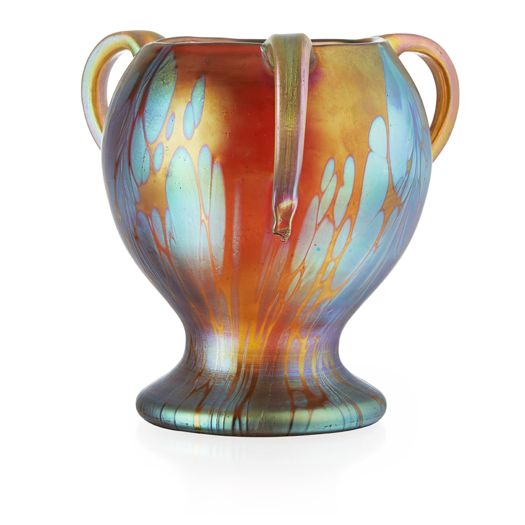 MEDICI PATTERN THREE-HANDLED GLASS VASE, CIRCA 1900