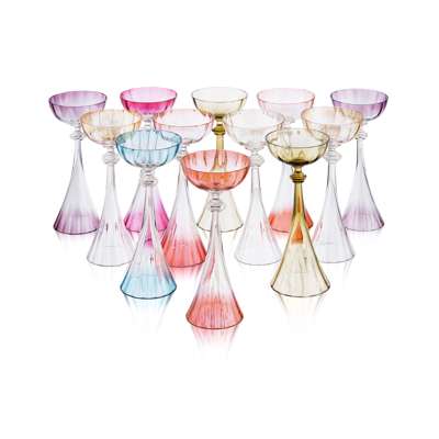 each with a lobed bowl, knopped stem and fluted bowl, in various colours of coated glass (12)