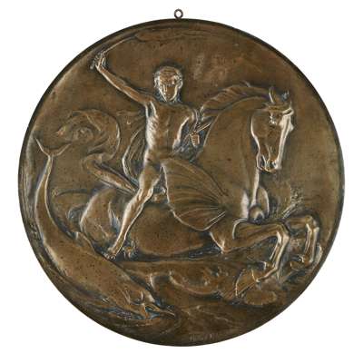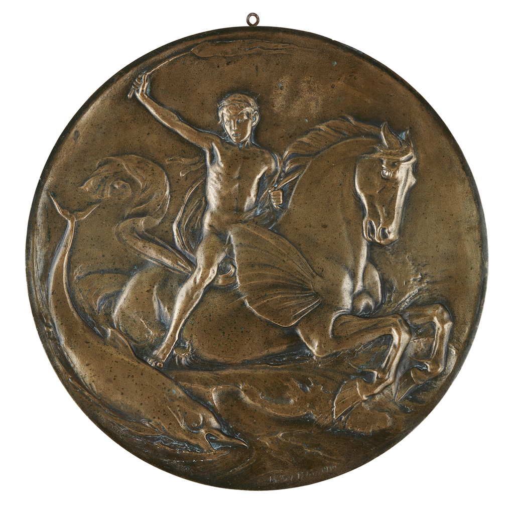 depicting a boy riding a hippocampus, signed and dated in the bronze HUBERT PATON/ 1910