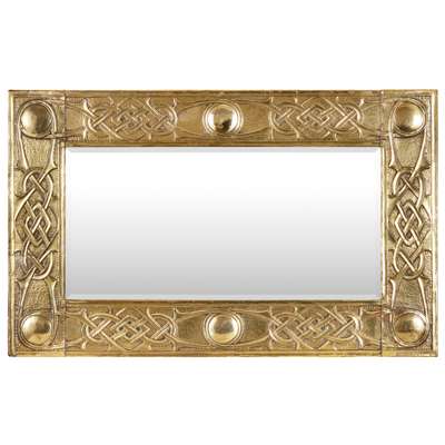 ARTS & CRAFTS CELTIC REVIVAL BRASS FRAMED MIRROR, CIRCA 1920