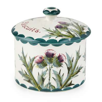 'THISTLES' BISCUIT BARREL & COVER, CIRCA 1900