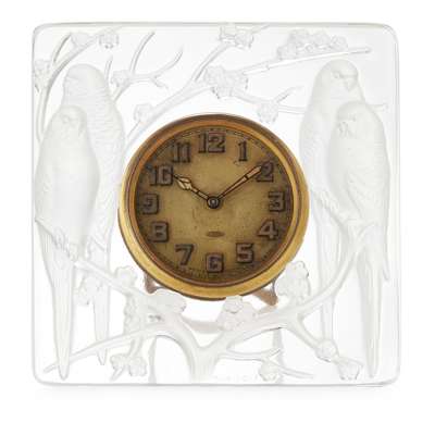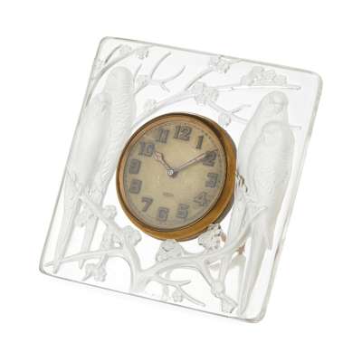 'LES INSEPARABLES' CLEAR AND FROSTED GLASS STRUT CLOCK, NO. 765, DESIGNED 1926