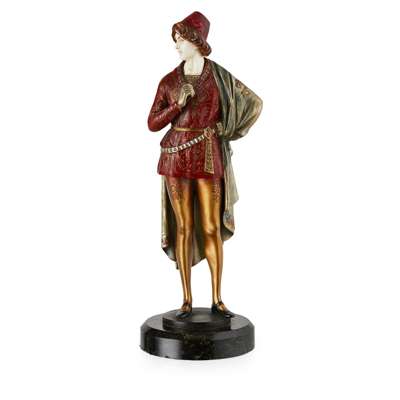 PATINATED BRONZE & IVORY FIGURE, CIRCA 1925