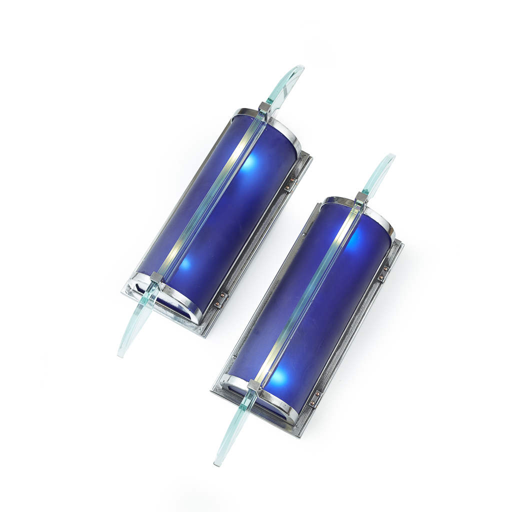 PAIR OF GLASS AND CHROME WALL LIGHTS, CIRCA 1930