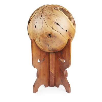 YEWWOOD GLOBE SCULPTURE, CIRCA 1970