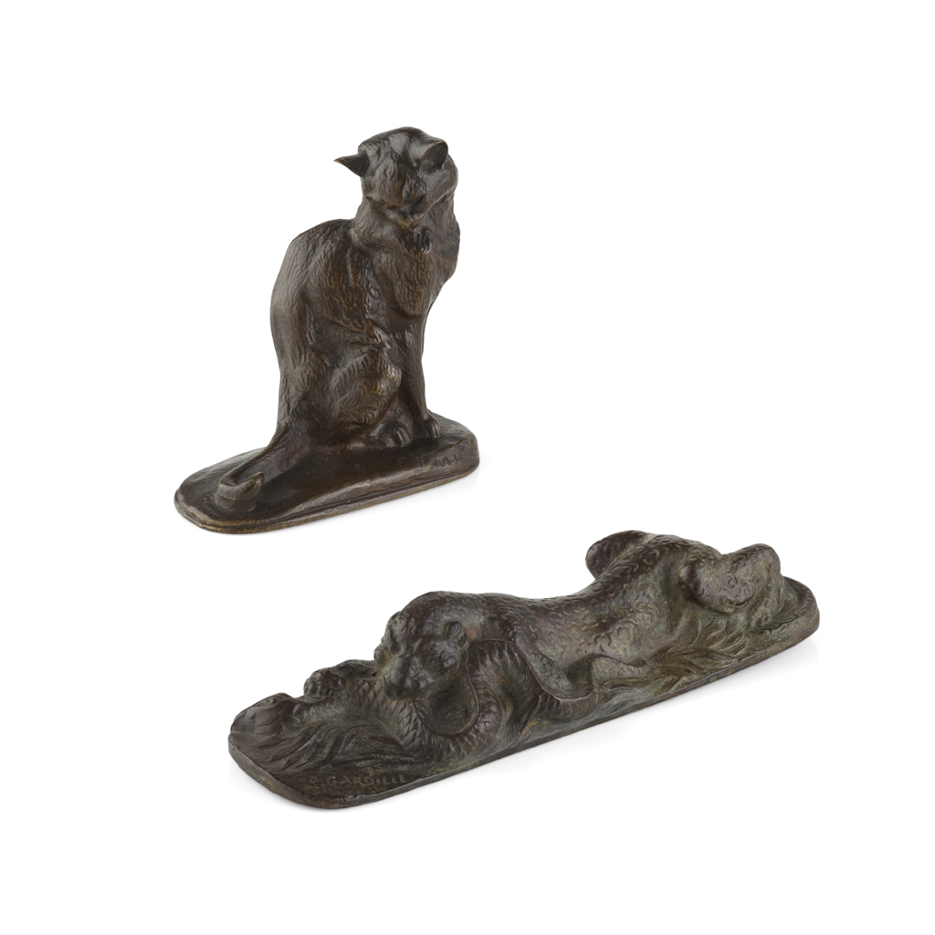 signed in the bronze E. FRÉMIET, 8cm high; and a BRONZE FIGURE OF A LEOPARD WITH A SNAKE BY RENÉ GARDILLE (1889-1938), signed in the bronze R. GARDILLE, 13cm long (2)
