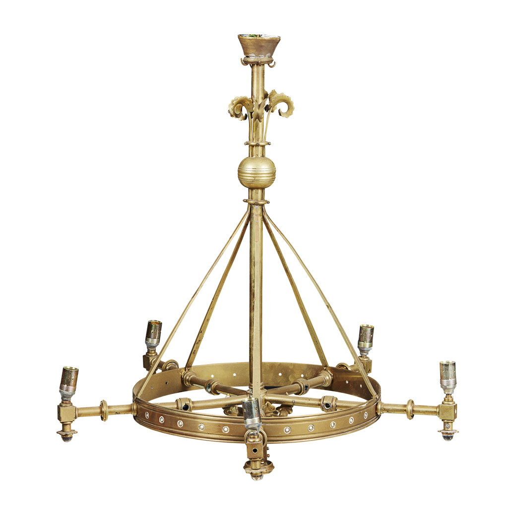 GOTHIC REVIVAL BRASS CONVERTED GASOLIER, CIRCA 1880