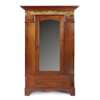 the projecting cornice above a marquetry frieze depicting longboats at sea and single mirrored door with drawer below on bracket feet