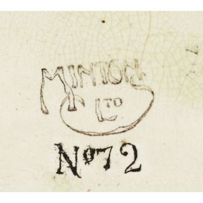 decorated with stylised plant forms on a green and red ground, printed maker's marks MINTONS LTD