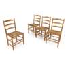 each with three rails to the back above rush seats on turned legs linked by stretchers (4)