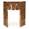 with allover repoussé decoration of stylised plant forms and with riveted applied strapwork, the hinged adjustable sides with central fire surround