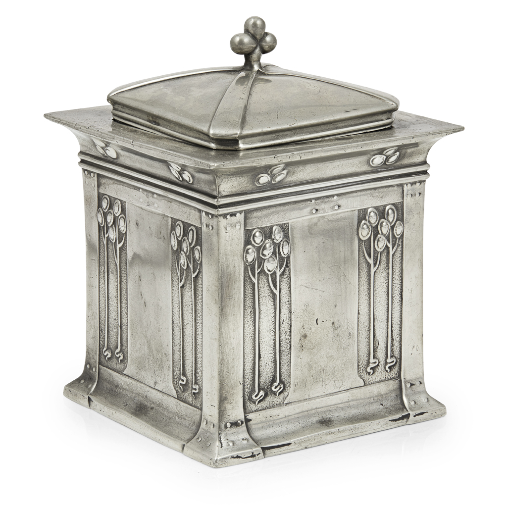 'TUDRIC' PEWTER TOBACCO BOX AND COVER, CIRCA 1905