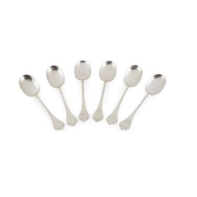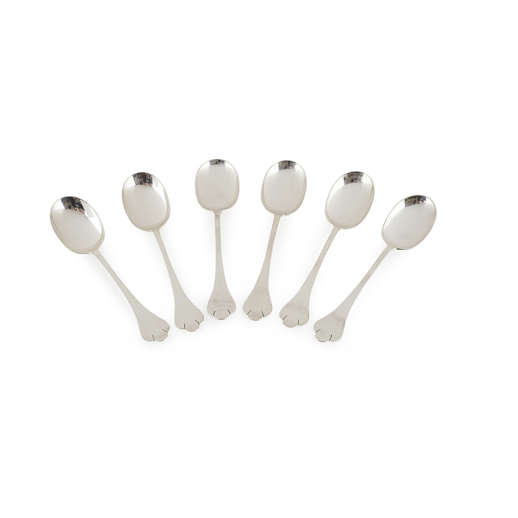 RARE SET OF SIX SILVER PLATED DESSERT SPOONS, CIRCA 1905