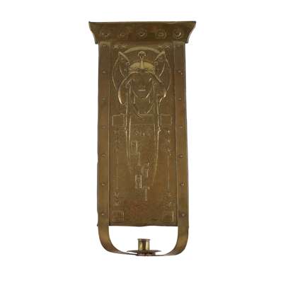 GLASGOW STYLE BRASS WALL SCONCE, CIRCA 1900