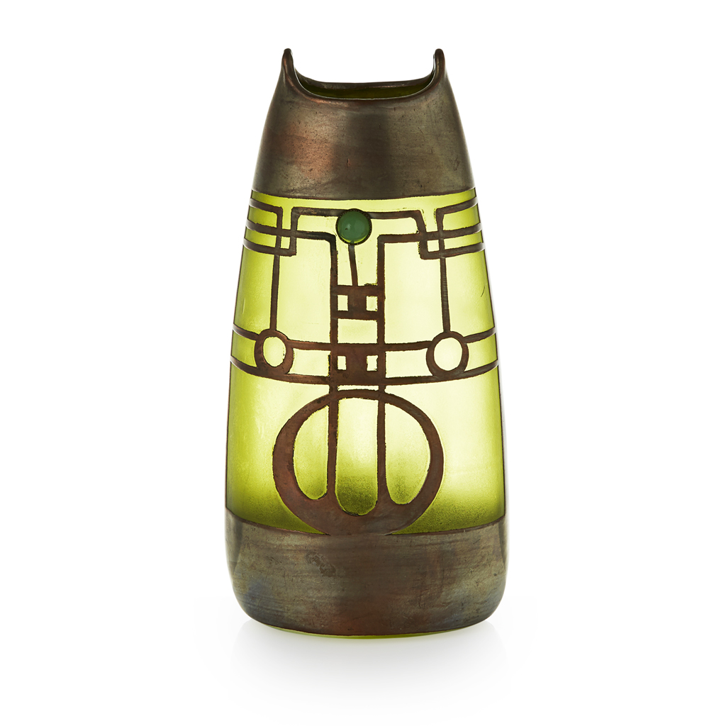SECESSIONIST GREEN GLASS VASE WITH COPPER OVERLAY, CIRCA 1900