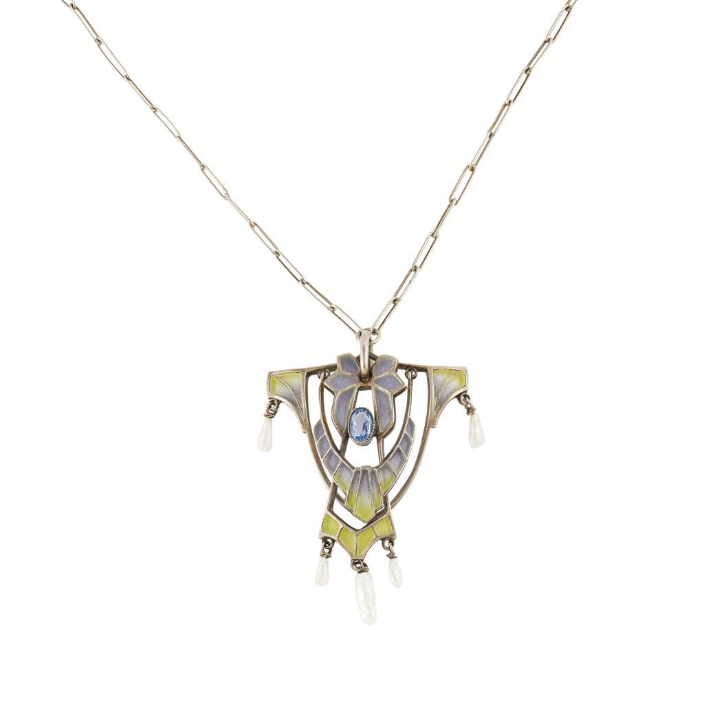 ART NOUVEAU PLIQUE A JOUR ENAMEL PENDANT, CIRCA 1910