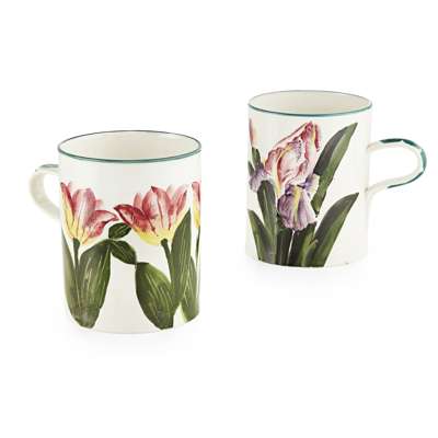 comprising a 'TULIPS' MUG, with impressed marks WEMYSS WARE/ R.H.&S., 14cm high; and a 'IRISES' MUG, with impressed mark WEMYSS, 14cm high (2)