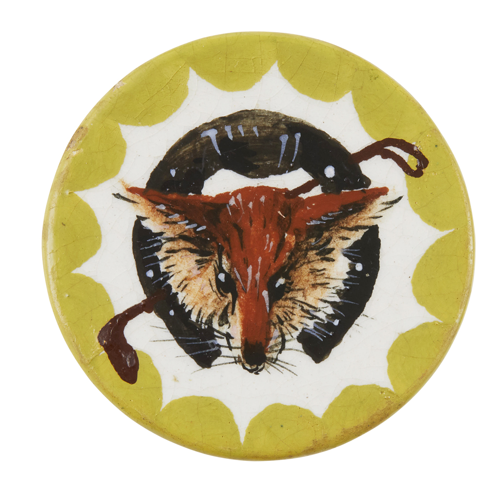 painted with a foxes head, horseshoe and riding crop within a scalloped pale green band, impressed maker's marks WEMYSS