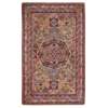 the machine woven ivory field with central red octagonal Celtic knotwork medallion surrounded by huntsmen with dogs, deer, boar and horses within red and polychrome strapwork border