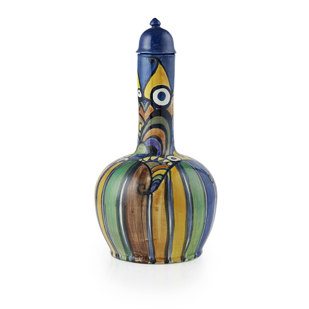 PAINTED BOTTLE VASE AND COVER, CIRCA 1930S