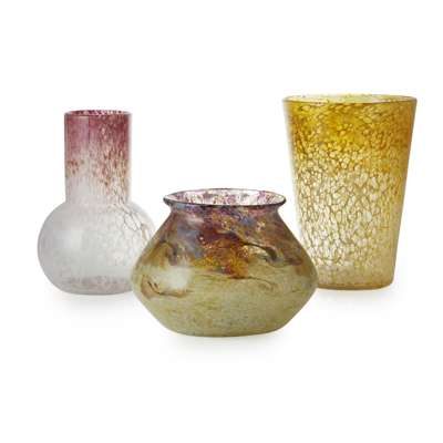 GROUP OF THREE 'MONART' GLASS VASES, 1930S