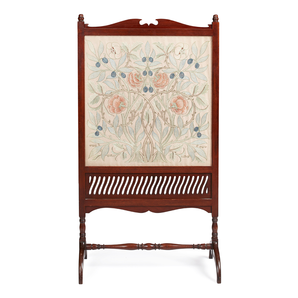 MAHOGANY FRAMED EMBROIDERED FIRESCREEN, CIRCA 1880
