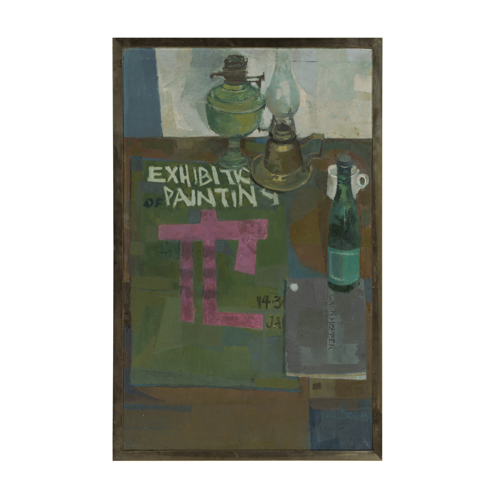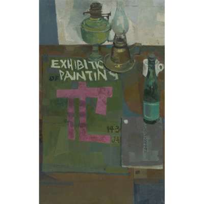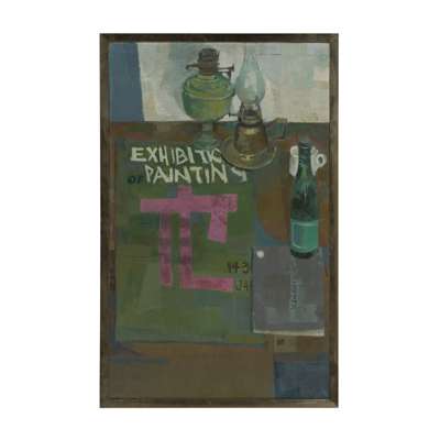 STILL-LIFE WITH EXHIBITION POSTER AND LAMP