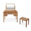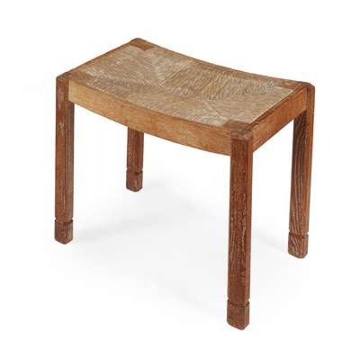the table with mahogany trim and four drawers on square legs, 107cm wide, 139cm high, 51cm deep; the stool with drop-in rush seat, 50cm wide, 44cm high, 38cm deep (2)