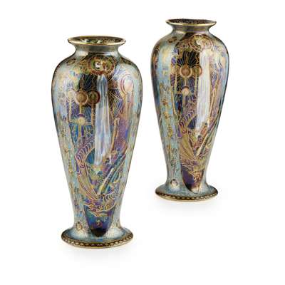 PAIR OF 'CANDLEMAS' PATTERN FAIRYLAND LUSTRE VASES, CIRCA 1925