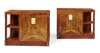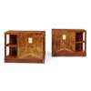 each with rectangular tops above single doors with shallow fluting and inlaid panel and with open shelves adjacent, the whole supported by square uprights and raised on a plinth (2)